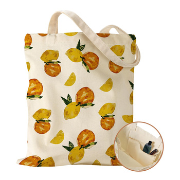 Vendita calda stile semplice Logo personalizzato limone cotone Tote Bag di tela spessa donne borse per la pubblicità